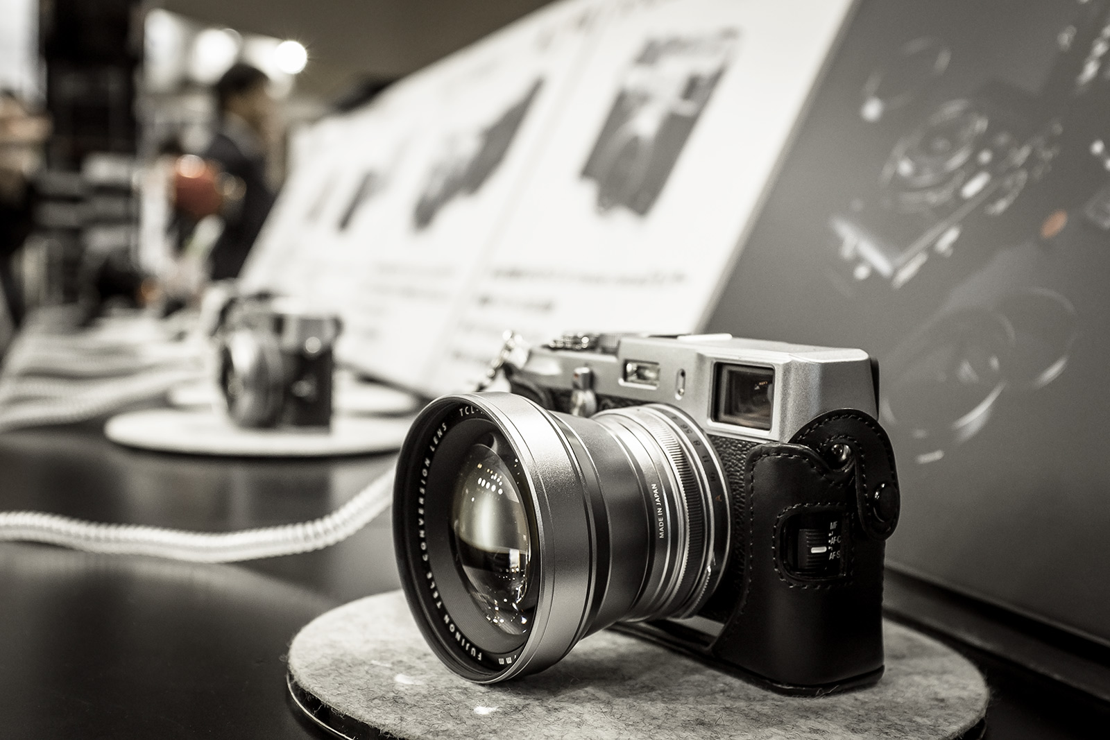 取り付けはフィルター同様、純正レンズの先端にスクリューマウントですからライカのLマウントレンズと交換の手間は変わりませんね。説明員の方の話によるとOVFは使えずEVFのみでの撮影になるとの事です。近年は ”ファインダーのFujifilm” みたいなブランドイメージがありますから是非ともOVFへのブライトフレーム対応を望みたいですね。写りに関しては多少なりとも収差は出るでしょうが、きっと発売と同時にソフトウェアによる画像補正を行うと思われファームウェアのアップデートが予想されます。