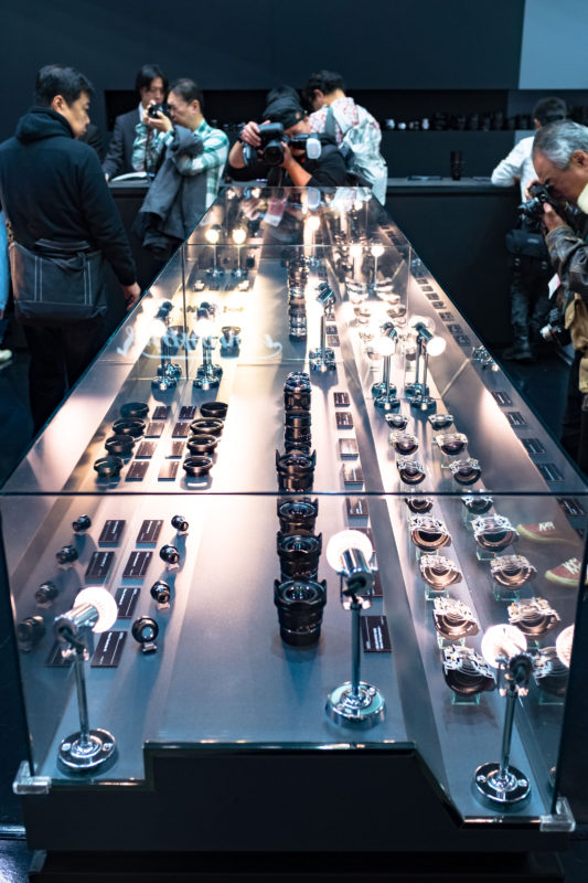 購入の予定は無いにしても、見ているだけで毎年ワクワクするのはZEISSやVoigtlanderのレンズが綺麗に陳列されたこれらのショーケース。主要なレンズは全てカットモデルも展示されていたりして、見て楽しむ!コーナーですね。遠くから眺めてもここのキラキラ感はちょっと特別というか。