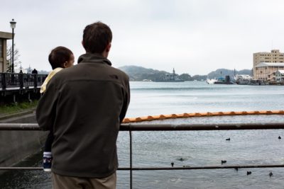 とはいえ、観光と言っても軍艦くらいしか思い浮かばず、レンタサイクルのスタッフの方に教えてもらった ”軍港めぐり” に参加することに。岸から眺めるだけでなく屋根付きで雨でも安心な観光船に乗って普段は見ることのできない軍艦を解説付きで見学することにしました。チケット売り場には15分ほど前に到着し14時の便に乗船するつもりがとっくにSold Out。残りわずかな15時の便を何とかGET。
