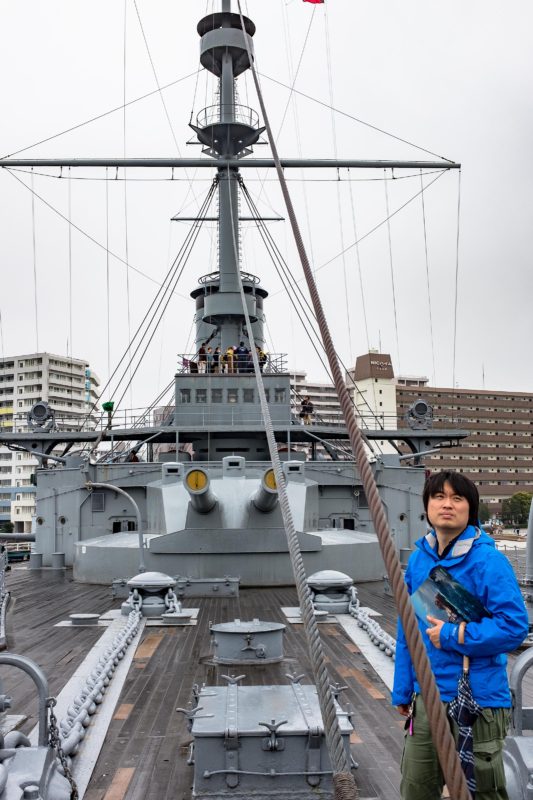 遠くから見ているだけではつまらないというわけではありませんが、下の写真は観覧料金を払えば自分の足で入る事ができる ”三笠”。こちらはコンクリートで固められているので海に浮かんでいるわけではありませんけどね。