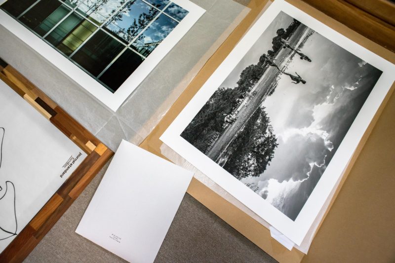プリンターの方との打ち合わせからテストプリント、そして本番のアウトプットまで2週間強を要しましたが本日いよいよB2サイズオーバーの巨大プリントが仕上がってきました。通常このサイズだと納品は大きなロール状にして輸送するそうですが、今回は少し無理を言ってフラットなまま輸送してもらいました。