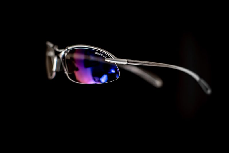 調べに調べた結果たどり着いたのがSWANSのAirless Wave 両面マルチレンズモデルSA-506 LSILというモデル。世の中の多くのサングラスが色つきなのに対しこれは無色透明。調光レンズのように室内では透明だけれど紫外線を浴びると黒くなる!みたいな仕組みもなく常にクリア。ただし表面に反射防止コーティングがされている為若干黄色っぽく見えますが、パソコン作業用のブルーライトカットメガネのクリアタイプと同等と言えば分かりやすいでしょうか。なので眼鏡越しの景色に色が付いて見える事はありませんし、レンズのカーブや形状こそサングラスですが普通のメガネに見えなくもないという控えめさがGood。