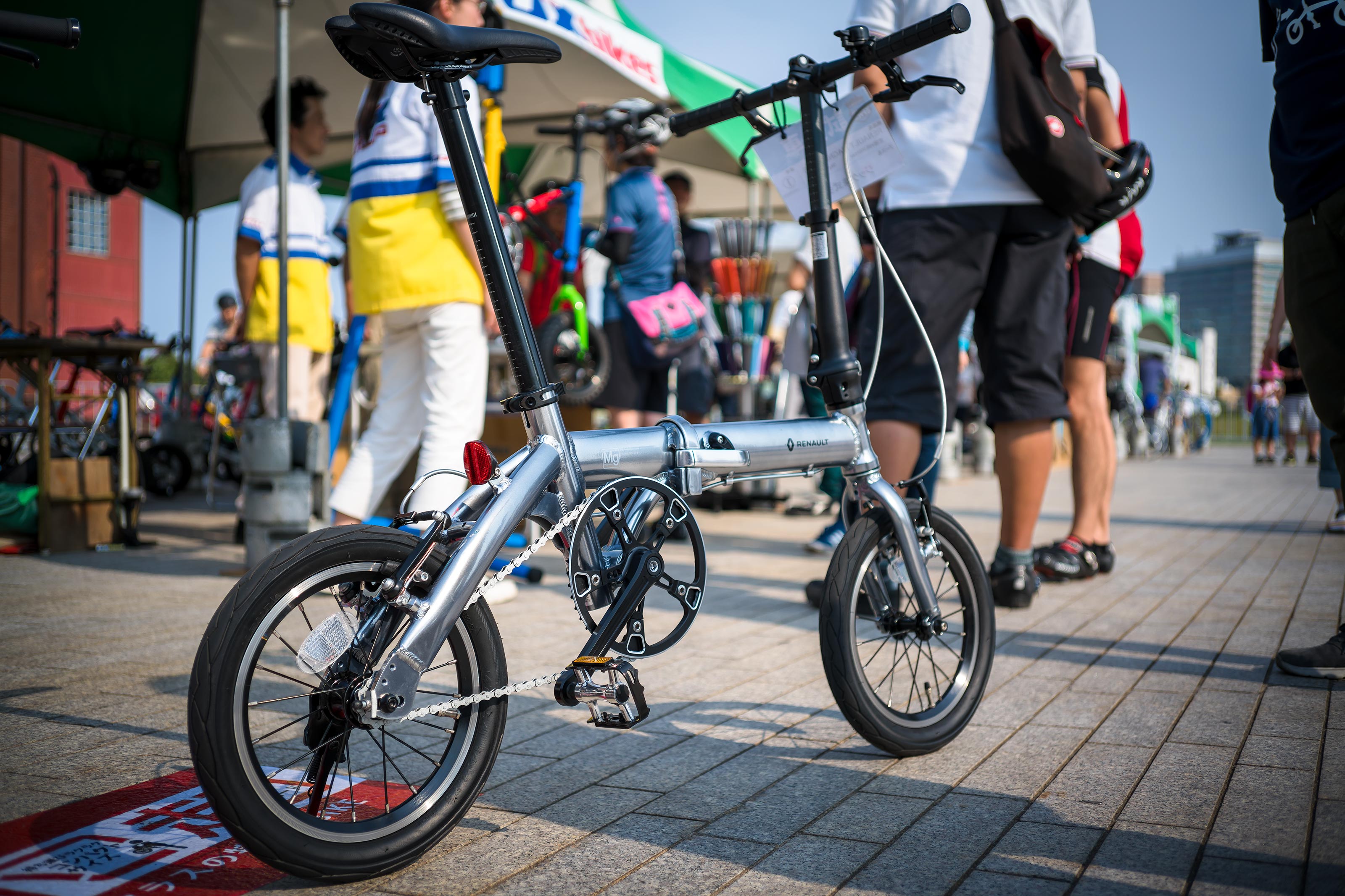 予想外だったのはこのイベントに展示される車両は私好みの小径車が多かった事。近年は自転車と言ったらロードレーサーがメインで小径車というのは物好きなファンが乗るもの...という印象が強く、こうした自転車イベントでも軽自動車が買えてしまいそうな価格帯のロードレーサーが並ぶ事が多いのですが、このイベントはなぜか小径車。とてもワクワクしました。