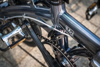 MAGNESIUM 8は上記MAGNESIUM 6の変速付きモデルとも言うべき存在ですが、タイヤが16インチである点が大きく異なるのと、一見同じに見えるフレームもこちらの方がややロングに設計されておりホイールベースが長くなっています。勿論スプロケット分だけフレームのエンド幅も広くなっています。それらを見るだけでも走行性能重視で設計されている事が分かりますね。