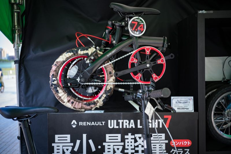 最初に目に付いたのがRENAULT MAGNESIUM 6とMAGNESIUM 8。14インチタイヤにマグネシウム製フレームを組み合わせ約7kgに収めてきたトレンクルキラー的注目モデル。びっくりする事にこれでお値段6万5千円程だと言うのですから、トレンクルの約30万円はいったいなんなのか...。