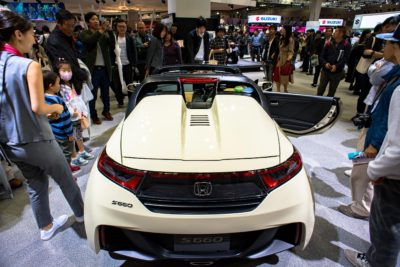 最近になって私の兄も購入したと言っていたS660。注文が殺到した発売直後の勢いはだいぶ落ち着いたと聞いていましたが会場ではやはり大人気でした。展示の仕方も上手かったですね。身近に感じられるよう平置きされていて自由に乗り降り出来、周囲に他の車を置かない事で皆が取り囲むように注目する...。