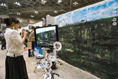 こちらのアーティストさんもなにやら面白いことをやっていました。大きなキャンバスに絵を描くのは他の方と変わらないのですが、ここでは何やらタブレット端末を活用しています。