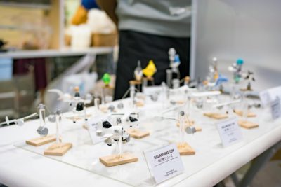 こちらの飛行機の置物、もうお分かりですね。数日前に私が購入した鳥人間コンテストの飛行機はこちらのブースで購入したものです。鳥人間以外にも写真の手前に写っているジービーレーサーと結構迷いました。これもなかなか可愛くて良かったのですが、ジービーレーサーは本物もかなりコミカルな感じでデフォルメした感じが出しにくいと作者も言っていましたし、こちらは似たようなものが他でも手に入りそうですが鳥人間はまず海外にはないでしょうし日本でも作る人は殆どいないでしょうから今回はそういった理由で選びました。