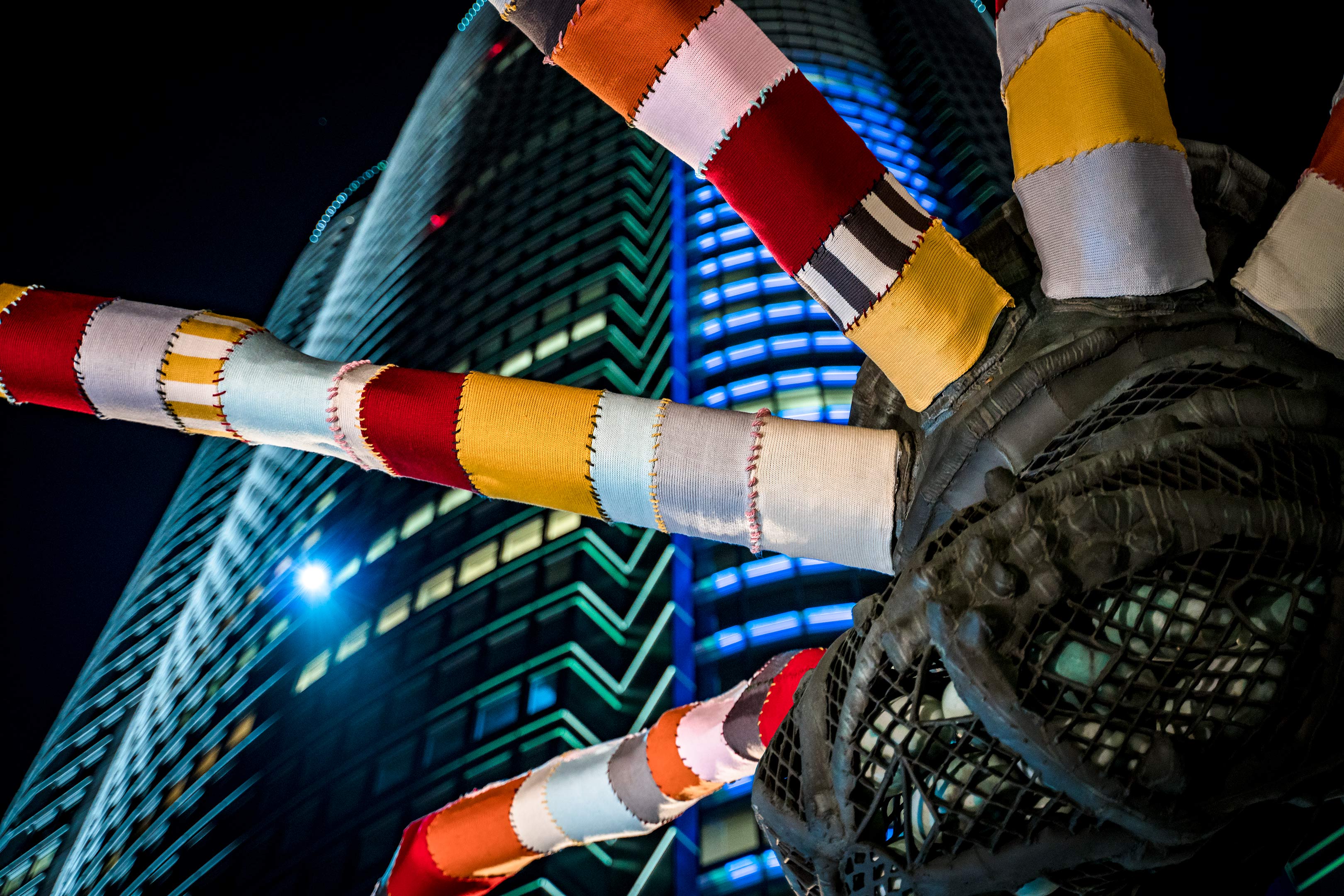 六本木ヒルズの待ち合わせ場所として有名なルイーズ・ブルジョワによる巨大な蜘蛛の彫刻作品。ママンと呼ぶそうですが、この蜘蛛の彫刻がカラフルな毛糸を纏いいかにもアートとして再注目されたイベント当日。
