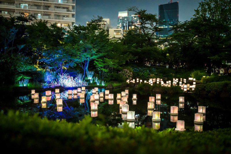 ヒルズ前の庭園には沢山の灯籠が浮かび、ここだけは静かな夜を感じる事が出来ました。ただこれだけ見ると夏の終わりみたいですけどね。