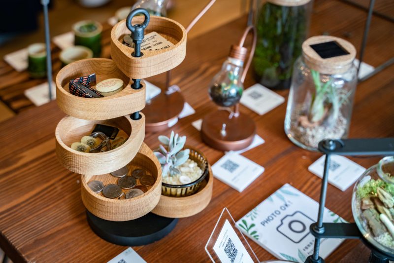 植物や多肉と言ってもやはりそこはハンドメイドが前提のCreemaのイベントですから臨時のボタニカルショップ!という事ではなく、それらをテーマに創意工夫して作られている40名のクリエイター200作品が並んでおり、全ての作品には二次元バーコードが添えられており、その場でスマホから商品を注文できるようなシステムになっています。そう、つまりこの展示は普段Creemaのサイトで見ている商品を実際に手にとって見れる事を優先に考えられており、この場で購入してお持ち帰りできる一般的なショップとはコンセプトが異なります。