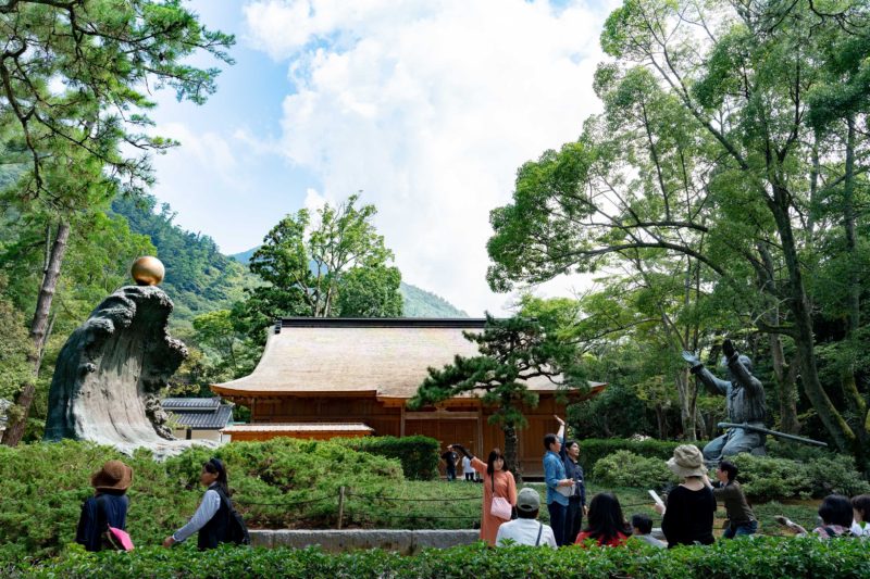 入口の鳥居は現在工事中、きっとこれも2020年に向けて更新中という事なのでしょう、観光案内のおばちゃんに聞いたところ鳥居はもう新しいものに置き換えられ今は足場を取り外している段階らしい...。いずれにしても神社やお寺に正面から入れないのは少し残念でした。鳥居を回り込むように進みます。