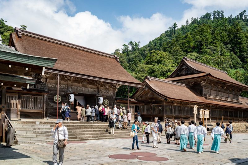 団体観光客の統率をするガイドさんのようで、聞こえてきたのは「そこのしめ縄のある建物を多くの人が訪れますが、本物は更に奥にあるあっちの建物で~す」と。なんだよ今お賽銭入れちゃったよ!と思いながらそのヒントを参考に私も後ろの建物まで回り込みました。門の向こうに更に大きな三角屋根が確認できいかにも本物!という佇まい。仕方がないのでもう一度お賽銭を準備してお参りを...。さっきより一つ多くお願い事をしておきました。