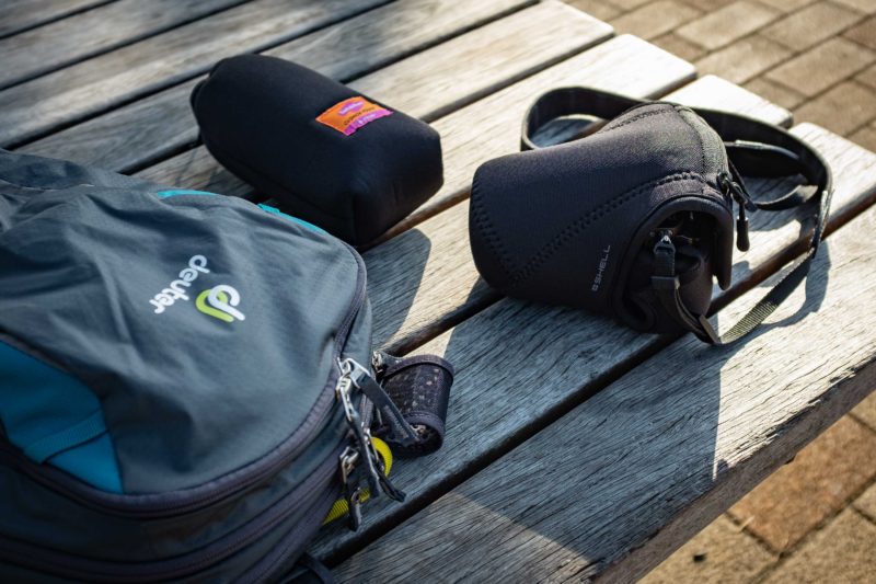というわけで誰でも考えそうなカメラケースを購入。ケースというよりジャケット。厚手のスポンジで出来ており簡単装着でしっかりガード。リュックに入れる前提なのでこれくらい簡易のものが丁度良い! カメラ用には HAKUBA SLIMFIT02 CAMERA JACKET M140 、交換レンズ用には ETSUMI E-5088 デジタルクッションレンズポーチ M をチョイスしましたが、レンズ用はクッション性が高いとされる10mm厚のスポンジ製ですから、レンズ保護には最適ですがいささか着膨れして大きくなります。カメラ用は素材感も良くとても使い勝手が良さそうです。