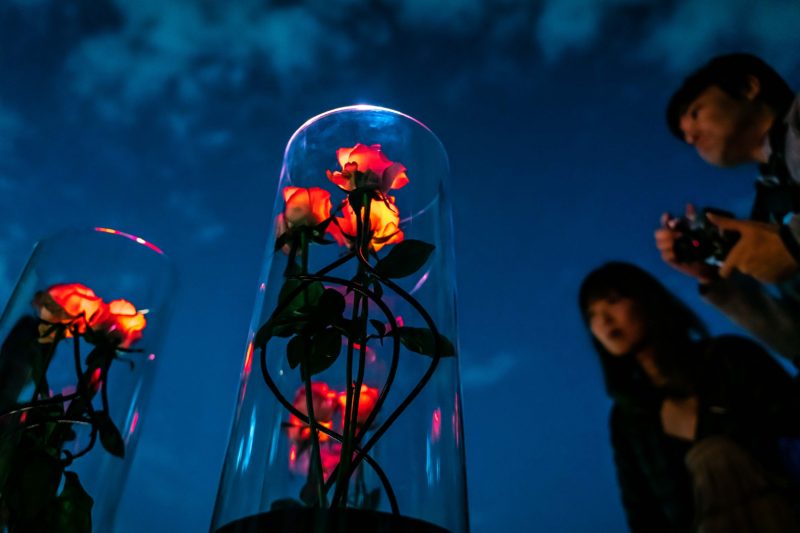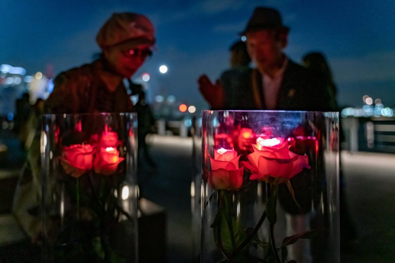 スケール感で言ったら他の作品には敵いませんが、大人のライティングで落ち着いた美しさを放っていたのがこちらの光るバラ。ガラス容器と組み合わせているあたりが私好み。このSMART ILLUMINATION 横浜なるイベントは老若男女あらゆる人が訪れますから、若者だけでなくお年寄りにも響くような出展が心がけられているように感じました。これだったら見るだけでなく買いたい!という人も出てきそうですね。