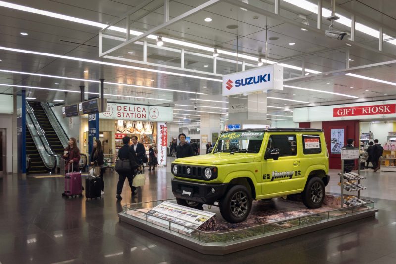 新大阪に到着して新幹線を降りたら駅構内にひときわ目立つ蛍光イエローのジムニーが展示されていました。確かジムニーを作っているスズキの工場は静岡県の湖西だった気がしますが、大阪にも会社があるんでしょうね。展示車両に足を止める人はそう多くはありませんでしたが関心を示す人はじっくり眺めておりました。まあでも、そのドアに貼り付けたJimmnyロゴまでは良しとしても、カタカナで小さく「ジムニー」って書いたのはどうでしょうね? せめてフォントを工夫するとかできたでしょうに。この ”かっこつけすぎないところ” が庶民的でスズキらしさでしょうか。