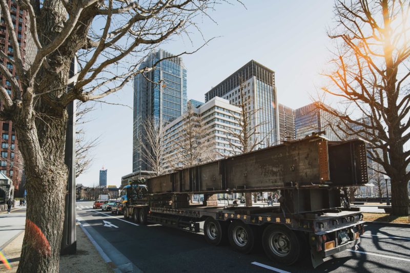 都内で時々見かけるこのような巨大な資材運搬はきっとそうした特殊建築に使われるのだと思います。こんなの車が無かった時代に人間の力だけで運ぼうとしたらピラミッドの建設以上の知恵と人手が必要ですよね。