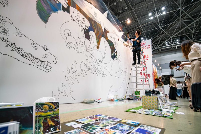 一つの作品に携わる人数も増えた気がしましたね。個人出展というよりはグループ参加みたいな感じでしょうか。実際に絵を描いている人はアーティスト本人だけなのですが、それを遠巻きに眺めるスタッフがあちこちにいました。
