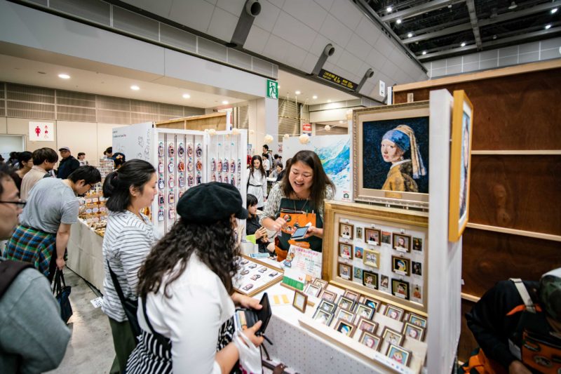 こちらは有名な画家の作品をコミカルな刺繍にして販売している印象的な出展者さん。だから毎回記憶に残るんですよね。フェルメールとか、ムンクとか、ゴッホとか、誰にでも分かる認知度の高い作品をデフォルメしているので外人さんにも評判が高く日本語と英語のやり取りで購入している姿を見ました。一つ購入して会社のデスクに飾っておいたら評判良さそうですね。