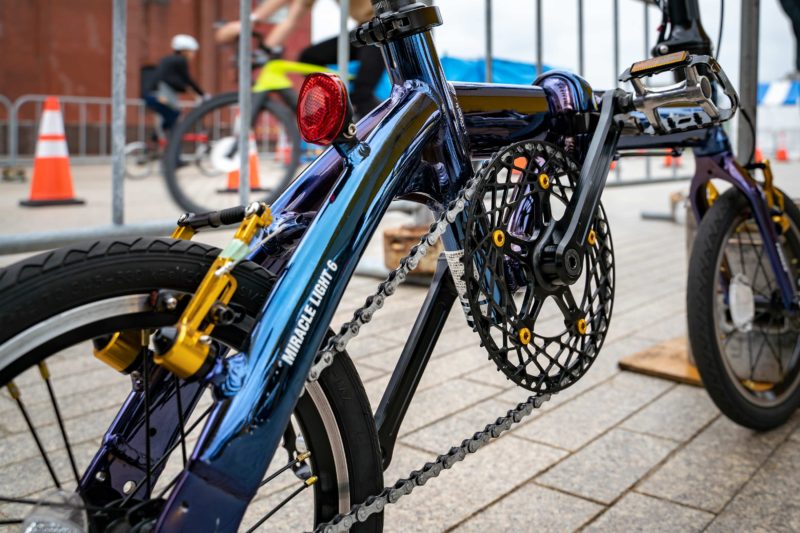Ultra Light Bikeシリーズは毎年びっくりするようなモデルを形にしてきます。一昨年がカーボンモデル、昨年が14インチのE-Bike、そして今年はこのメッキフレームのMiracle Light。