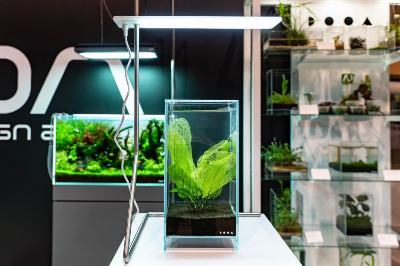 超小型のテラリウムも展示されていました。もしかすると水草を販売しているのか?とも考えましたが、しっかりしたガラス容器に入っていますしソイルとの組み合わせなど見てもおそらくこれは一つの作品なんだろうなと。
