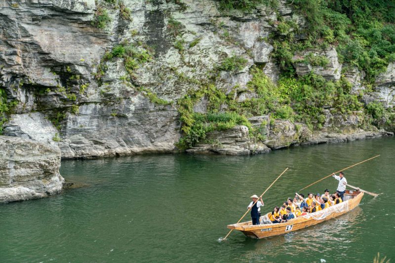 長瀞といえば岩畳。荒川の水が削り作られた特殊な造形は中国の水墨画にでも出てきそうなシルエット。東京から1時間半の距離とは思えないくらい見事な渓流です。