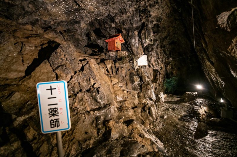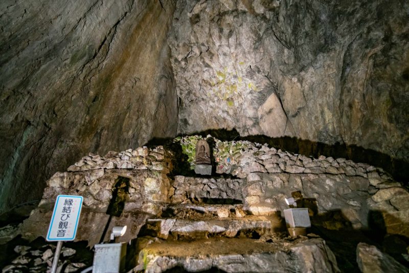 メインとなるこのエリアの長い階段を上っていくと現れるのが「縁結び観音」。なぜに洞窟の中にエンムスビ?という疑問は置いておいて、一応手を合わせてきました。更に奥の方へ進んでいくと今度は「十二薬師」なる神様が...。もはや何でもありですね。その他にも三途の川とかもありましたし。洞窟そのものを一つの世界に見立て、昔の人はこうした自然の産物を神聖な場として守ってきたのだと思います。