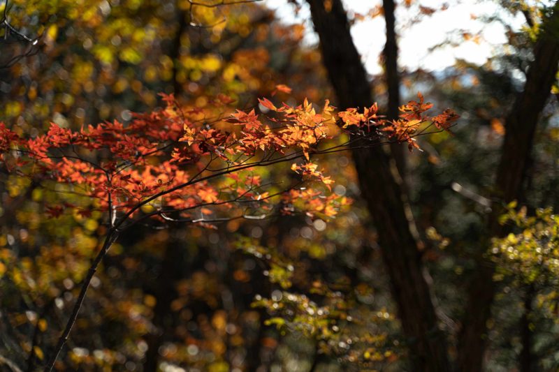 紅葉が素晴らしかったですね。現地到着が午後だったこともあり少しずつ日が傾き色温度が下がってきた関係で一層オータムカラーが強調されたように思います。もみじの写真などは荒船山登山道を少し歩いて撮っているため熊出没注意!の看板だけが怖かったです。登山者は皆熊鈴つけていましたし。私もそろそろ鈴準備したほうが良いですかね、登山はしないまでも山奥に行く機会が多いですから。