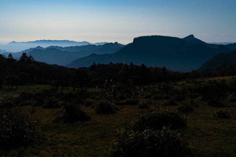 太陽が完全に沈み、薄明時刻が終わった後の撮影。ISO800、F5.6、30秒露光です。荒船山に斜光が当たればもう少し存在感が出たと思いますが、この時の月の位置だと光源は天頂付近ですからこうしたシルエットになりますね。まあ明け方くらいまで粘れば月が理想の位置に移動してくれたと思いますが、それには本格的な防寒対策と熊鈴が必要です。