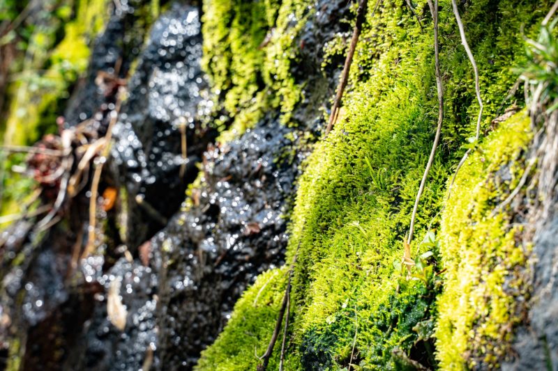 綺麗な沢などで見かけるこれらの苔、とても美しいです。綺麗な緑には光も大切な事を再認識しますね。