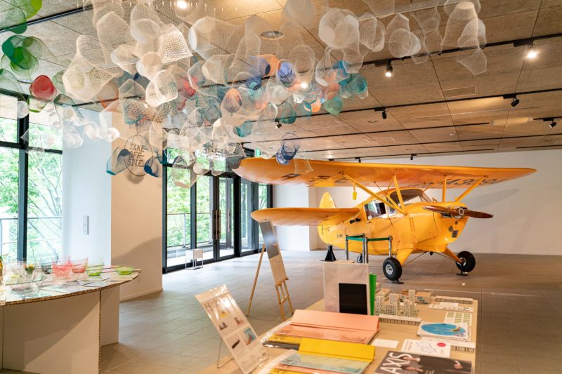 今日はその中の1店舗をご紹介。TAKE-OFF-SITEと名付けられたここは多摩地区のクリエイティブな企業、作家の商品を販売するテイクオフショップだそうで、何より目を引くのがこちらの飛行機! 昔ながらのラジコン飛行機をやっていた人なら「お、エアロンカ?」と勘違いしてしまいそうな風貌。