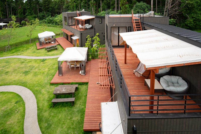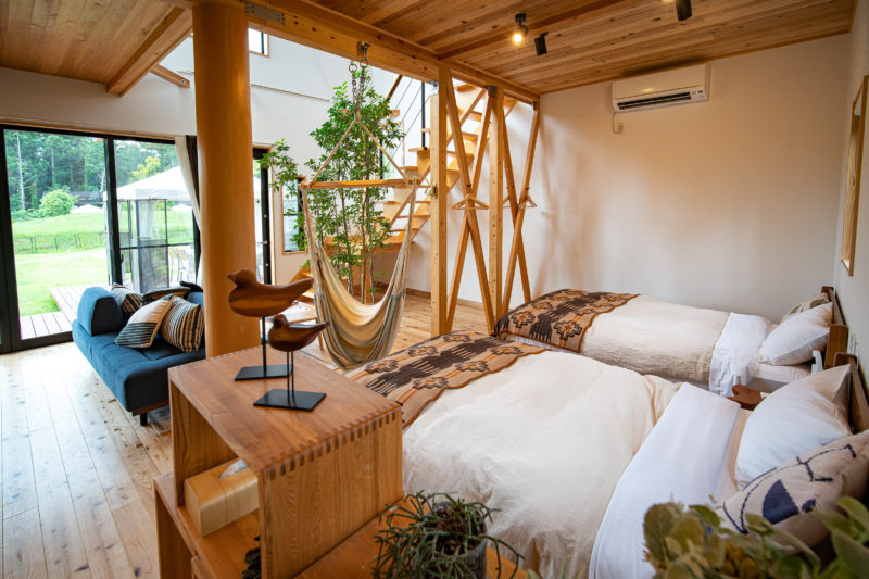 THE FARMにはグランピングの他にモダンなコテージがいくつかあります。その中でも今回利用させていただいたこちらのコテージグランデは昨年建設されたばかりで3棟のみのリッチなもの。よくも予約が取れたものだと我ながら感心しますが、新型コロナウイルスの影響でしばらく外出自粛が続きその解除のタイミングが功を奏したようです。