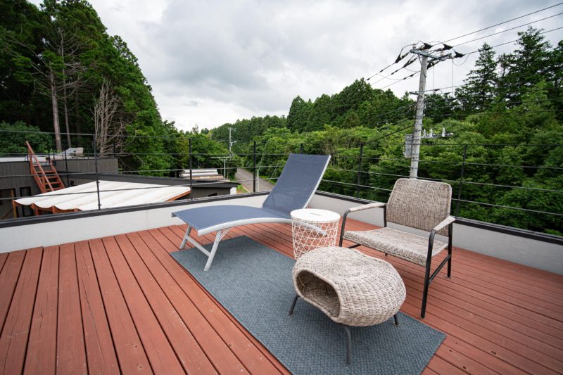 このコテージは2階バルコニーからさらに上に階段が続いており屋上までがリラクゼーションスペースとして開放されています。もはやこれはコテージという名の ”家” みたいなスケールですね。