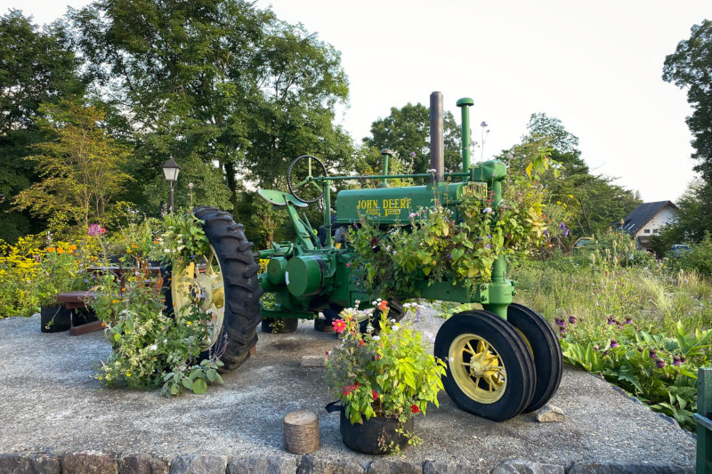 一方こちらは清里にあるビールとカレーで有名とされるレストランROCKの入り口に展示されているトラクター。明らかに国産車ではない感じが一目で伝わってきますね。私が生まれ育った田舎でもトラクターは時々見かけましたがこんなふうにかっこいいモデルではなかったです。