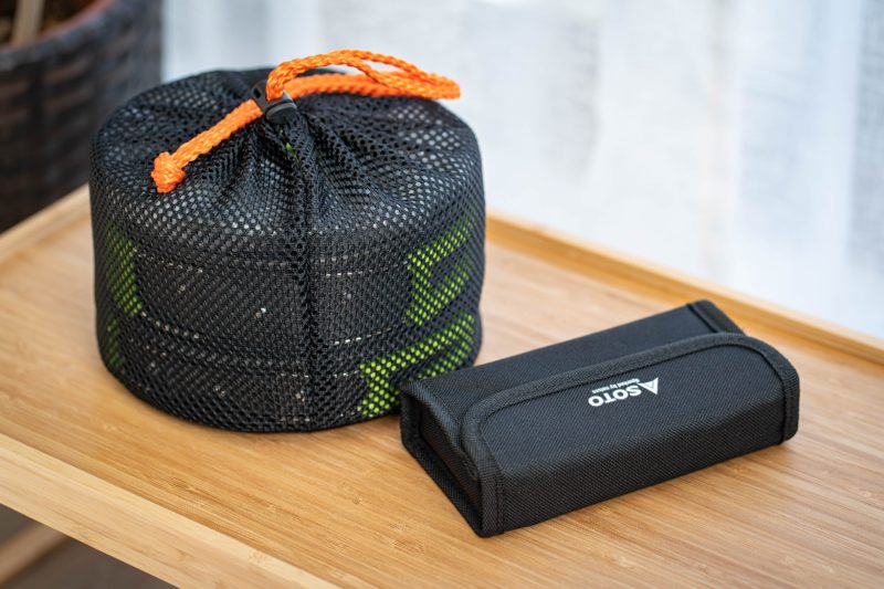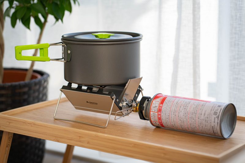 と言っても、この写真を見る限りどれがバーナー?という感じだと思いますが、手前の黒くて四角いケースに入ったものです。この時点で一般的なバーナーとはちょっと違うな?と思われるかと。ちなみに奥の丸いのは同時期から使い始めているクッカー類。