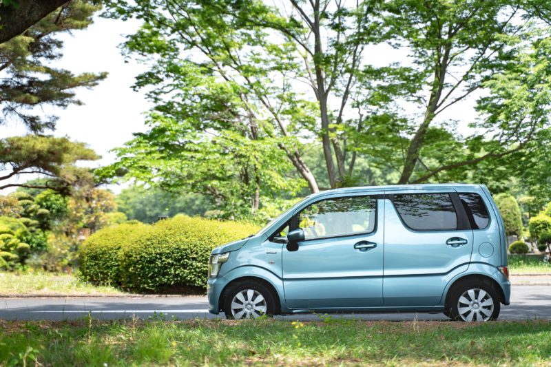 車の受け渡しにディーラーを訪れた際は駐車場の真ん中にガンメタのかっこいいワゴンRが停まっていたので、「お、なかなかカッコイイ代車を準備してくれたな」と思ったんですけどね、そちらは最上位グレードでオプションてんこ盛りの高そうな感じでしたので。そしたら奥の方からこの水色の車が出てきて「おまたせしました!」と。どうやらカッコイイ方は本日納車のお客さんの車だったようで私の勘違いでした。