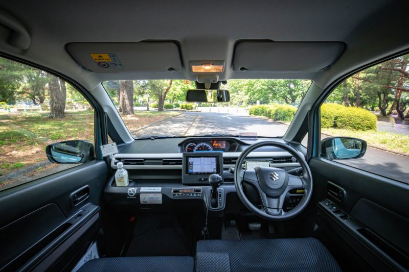 車内は至ってシンプルなデザイン。好みの分かれるところですが私は断然ジムニーのほうがカッコイイと思います。ワクワク感があると言いますか。ただ、ドリンクホルダーのレイアウトだとか各種収納だとか実用性の観点では圧倒的にワゴンRのほうが使いやすいでしょうね。