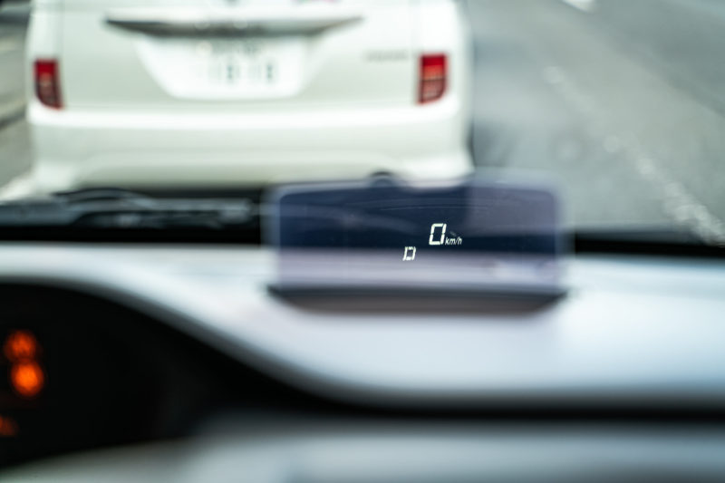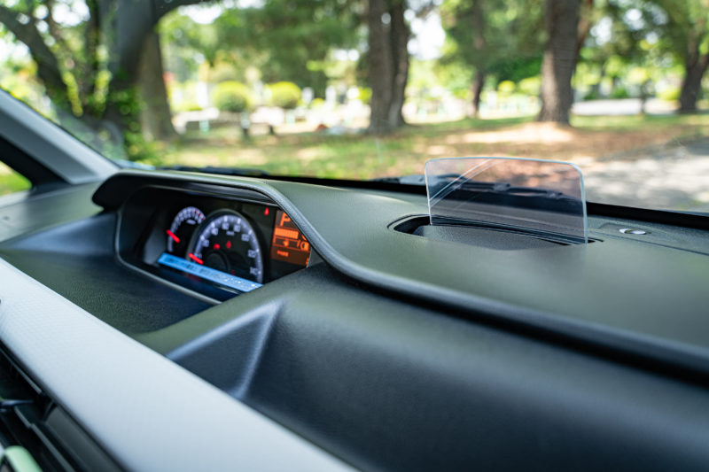 せっかくここにHUDをつけるのなら車速やATポジションを表示させるのではなく、ナビの右左折案内を矢印で表示するような機能があれば良いと思いますけどね。いちいちナビの画面を見なくてもここに矢印と交差点までの距離を表示してくれれば前方から大きく視線をそらすこと無くナビの案内を確認できると思うのですが。