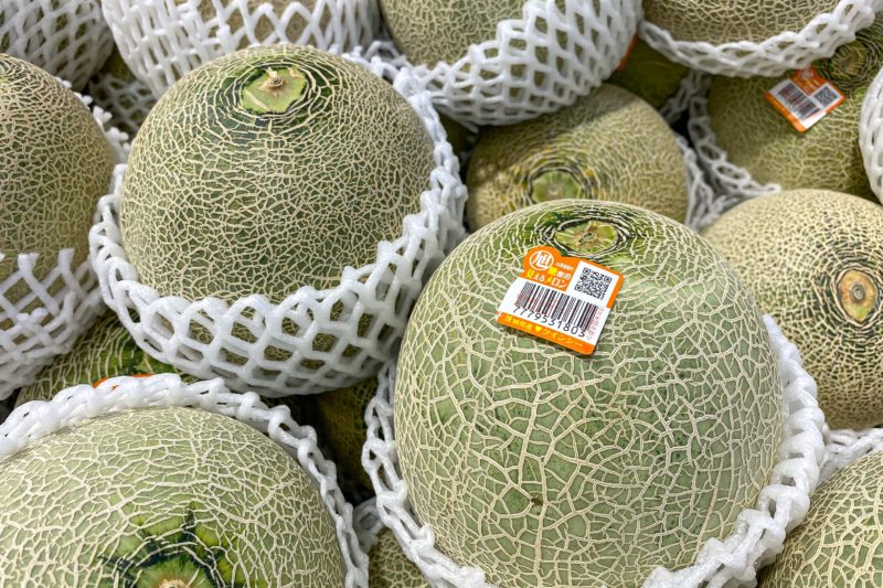 これまではたくさん並ぶメロンの中でもなるべく大きくて柔らかいものを選んでいたのですが、今日訪れてみたところ何やらいつもは見かけないラベルが貼られておりました。