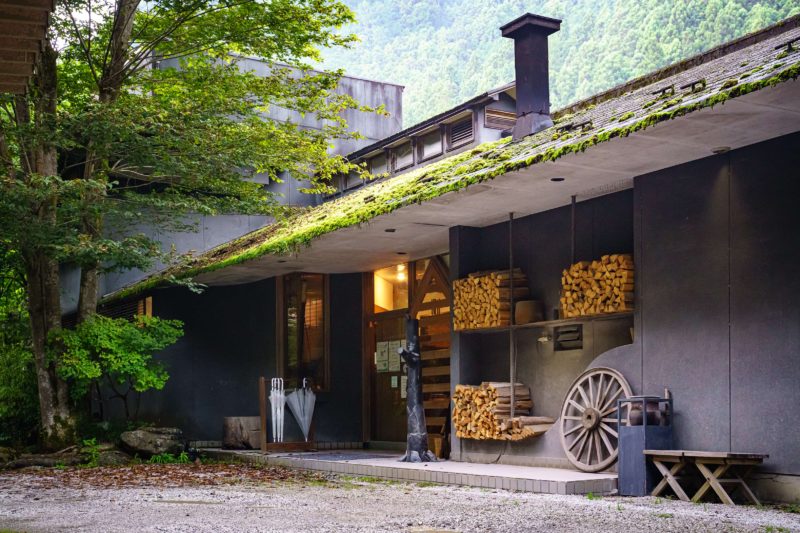 入口に並ぶ沢山の薪は雰囲気作りのオブジェではなく、ここ山の茶屋は炭火料理の人気が高いらしく店内には暖炉で火種が絶やさずキープされているのでした。にしても綺麗な薪ですね。