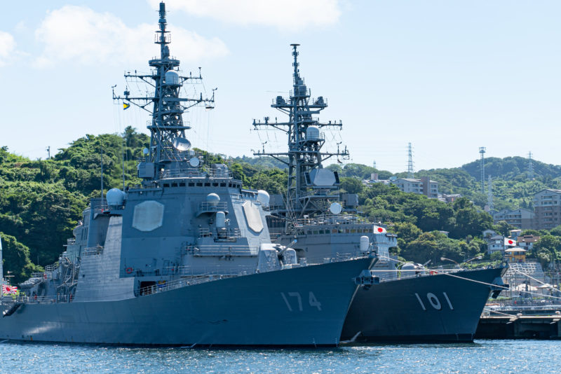 数年前に同じ軍港めぐりで覚えた ”イージス艦” なる呼び方。船体にある大きな8角形のホームベースみたいな白いプレートが目印。その正体は巨大なレーダーで1,000km以上に及ぶ広範囲を監視可能だそうで、計算ではこのイージス艦数隻で日本列島のすべてを見張れるのだとか。