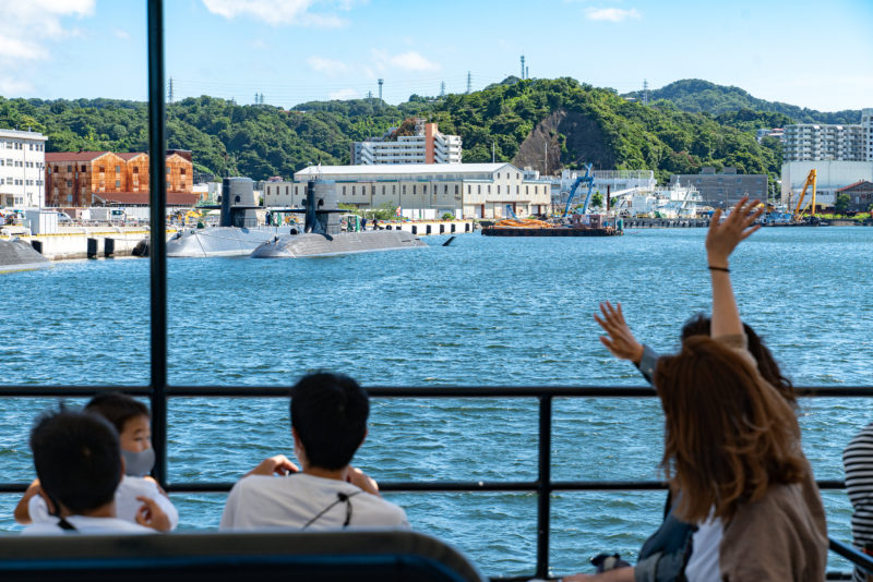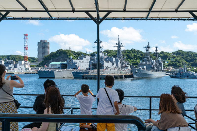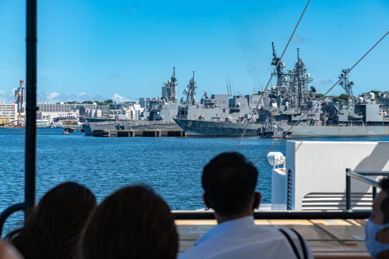 軍港めぐりはここ横須賀で艦船や潜水艦を間近で見られる日本唯一の観光。クルーズ船内ではガイドさんの話が途切れなく続くのですが、海上自衛隊やアメリカ軍の船を紹介してくれるからと言って自衛隊による観光サービスというわけではないんですよね。あくまで民間による運営だそうで。