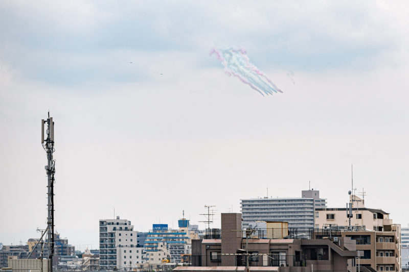 それにブルーインパルスがカラースモークを出すのはこんな時くらいで、普段は環境汚染の観点で白い煙しか出しませんからね。大変貴重なものを見れました。