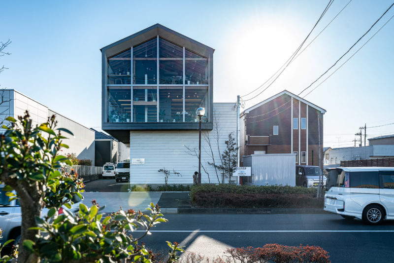 有名なデザイナーによる設計なのでしょうか、全面がガラス張りの居住スペースは建築メーカーのモデルハウスのよう。このガラス張り!の美しさに歩いている人も振り返りますね。写真を撮った15時くらいに太陽を背負っているということはこのガラス面は北側ですから日差しを遮るためのカーテンやブラインドは無くても成立しますし、実際そういったものは設置されていないように見えましたから、これは見せる居住空間という事なのでしょう。カッコいいですね。