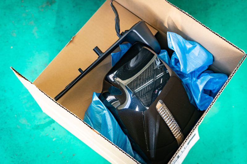 作業はドアへのマウント部分からアセンブリ交換なので電装系のカプラーとネジ3本外せばゴロっと丸ごと取り外せます。私の車は自分でオーディオのツィーターをミラーマウントの車内側に装着していますが、ディーラーメカニックの方も慣れたもので手早く作業。15分後には新品ミラーへと交換完了しておりました。交換後のミラーは勿論快適動作。動作音も心地よく「これが普通だよね」という感じ。