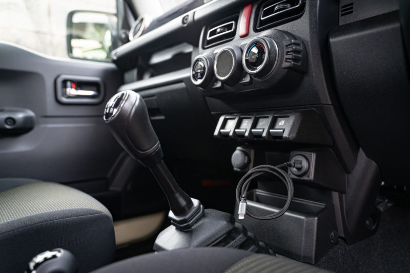 ケーブルに求める条件はフロントガラスに映り込まないようブラックカラーである事。長さが70cm程度が望ましい。丈夫で断線しない事。たったこれだけ。しかしこの3つの条件すらクリアーできるケーブルって世の中少ないのです。一番貴重なのは70cmという長さ。この時点でエレコム製くらいしか選択肢が無いんですよね。でも直前まで使っていて断線したのがそのエレコム製でして...。