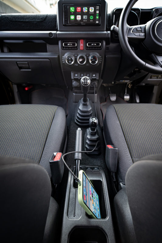 私が70cmという長さに拘る理由は上の縦長写真のようにiPhoneの置き場としてサイドブレーキ脇の小物ポケットを定位置としたいから。これまでもここにおいて使ってきましたがポケットサイズがスマートフォン置き場としてジャストなうえに位置的にも邪魔にならないので都合が良いのです。