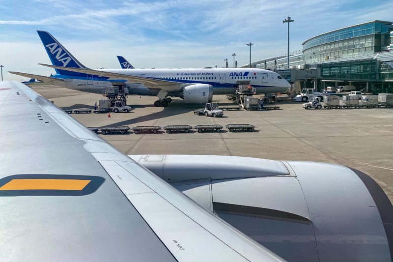 今日私が乗ったボーイング767−300(手前)は私が知る限り離陸時に一番加速力があって体をシートに押し付けられるような感覚が味わえます。最近は向こうに見えるボーイング787が増えましたけどね、私は767が好きです。