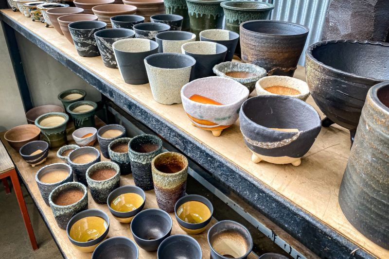 大きさは出窓や玄関にちょっと飾るのにちょうど良いサイズなのでそれこそ多肉とか塊根植物、ミニ盆栽などにもってこいですね。手前に写っている白と黒のどんぶりみたいな鉢がなかなか良いなぁと思って見てきましたが、例えば背の低いハオルチアなどを植えるならあえて鉢は背の高いものを組み合わせると見栄えが良いかもしれませんね。下の段の真ん中あたりに写っている2つもよく見てくればよかったと今更ながら...。