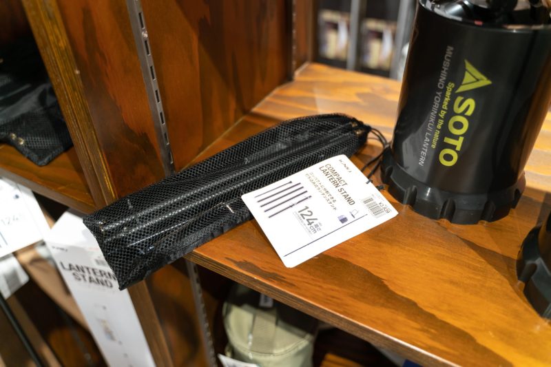 そんな時重宝するのがランタンスタンド。細いポールの先にランタンを吊るすフックが付いているだけなのですが、これがあるだけでランタンの設置にかなり自由度が出るのです。ただタープポールのように太く重い物は車への積載時に嵩張りますから、なるべく細くて軽いものを選びたいところ。上の写真はちょっとわかりにくいですが最近は直径1cmくらいで長さが30cmくらいのポールを繋ぎ合わせてロングポールとするデザインの物を時々見かけるようになりました。これであれば持ち運びは小さくて軽いですし組み立てれば長くなりステンレスやアルミ製ですから剛性もバッチリです。